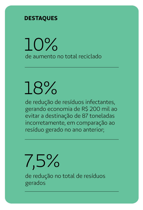 Nosso compromisso com a sustentabilidade também evoluiu. Em 2025, ampliamos nossas ações voltadas à gestão de resíduos, eficiência energética e práticas que reforçam a responsabilidade socioambiental como um valor inegociável. Paralelamente, avançamos em temas fundamentais como diversidade, inclusão e respeito, promovendo um ambiente que valoriza as pessoas. Também iniciamos uma jornada para a sensibilização dos médicos sobre o seu autocuidado.
